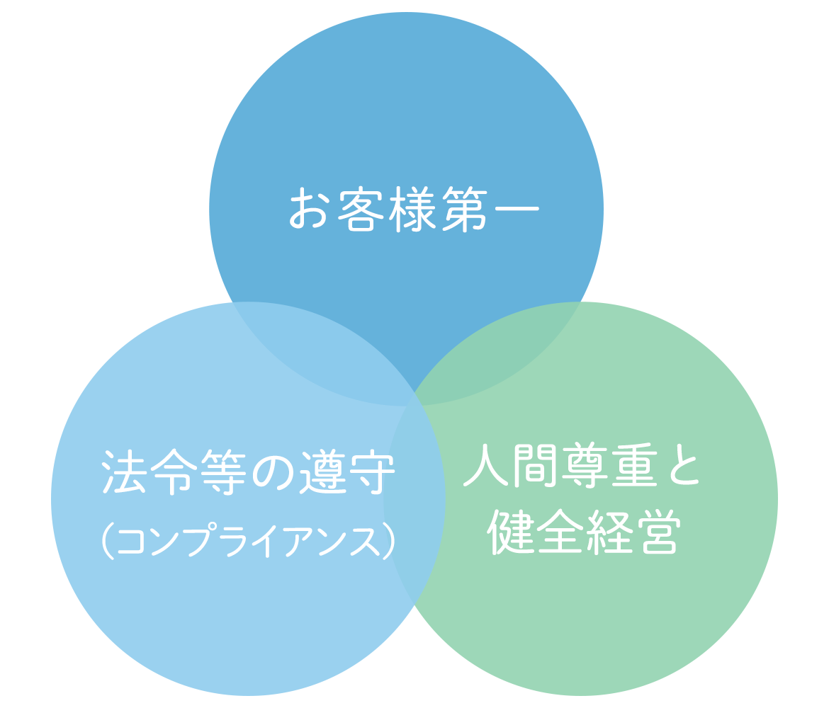 企業活動および業務遂行にあたっては、法令および行動倫理等を遵守することをすべてに対して常に優先し、企業としての社会的責任を果たす。